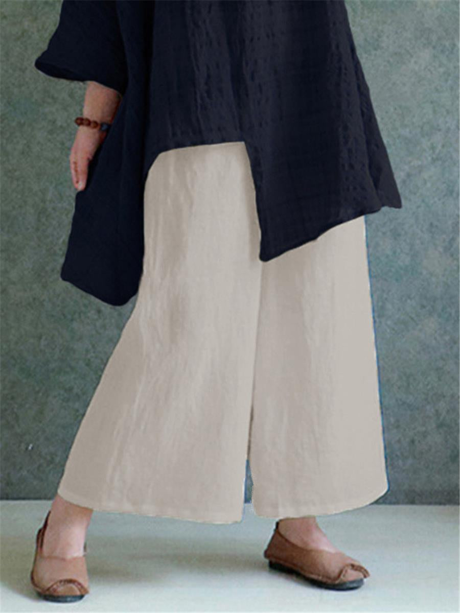 Women Cotton and Linen Solid Color Loose Harem Pant