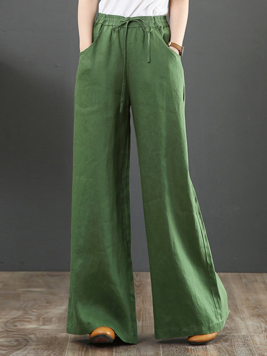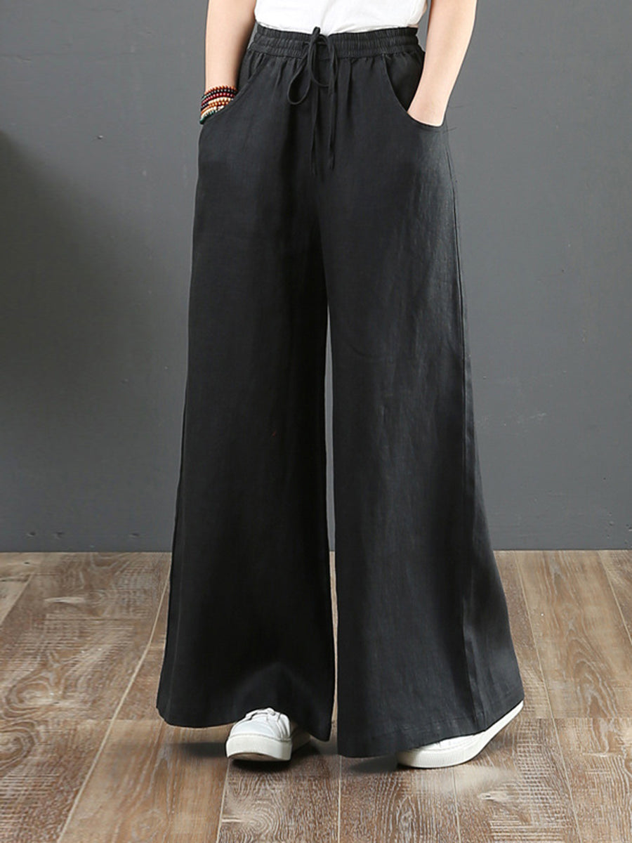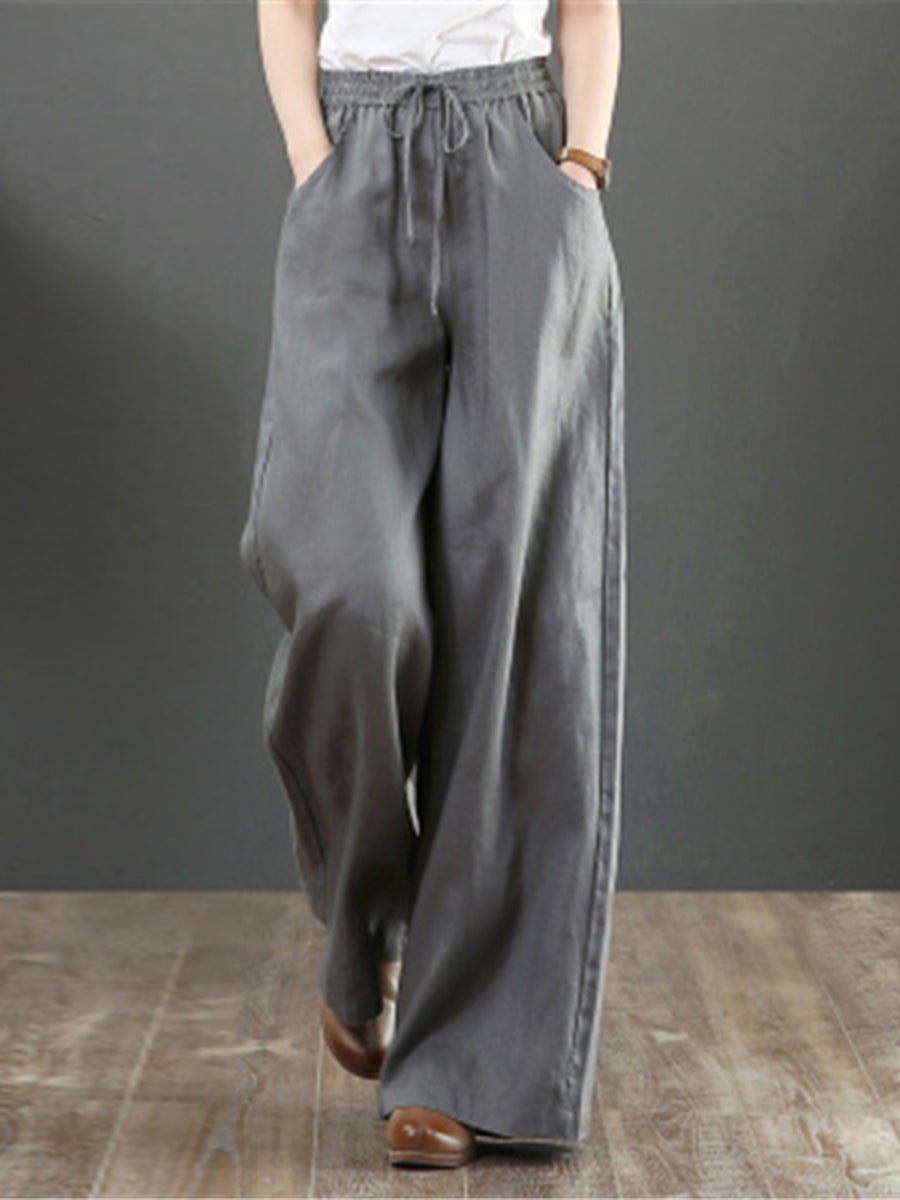 Women's Solid Color Retro Casual High Waist Loose Wide Leg Trousers