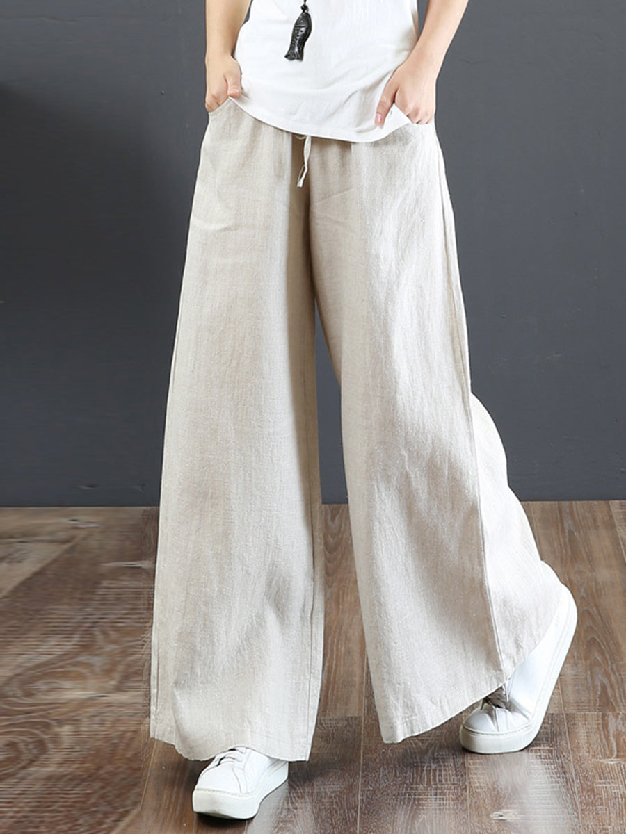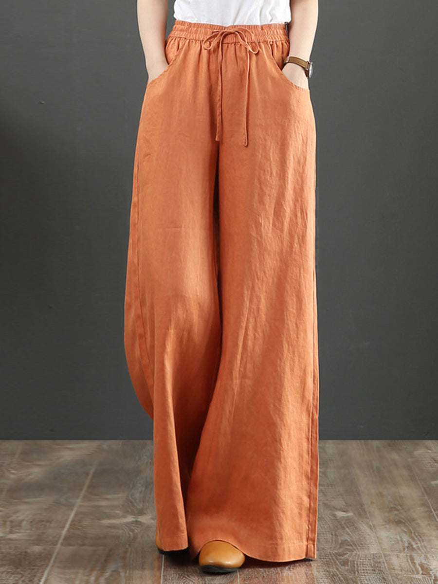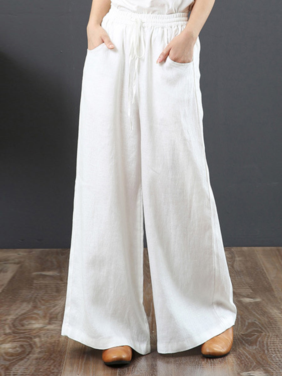 Women's Solid Color Retro Casual High Waist Loose Wide Leg Trousers