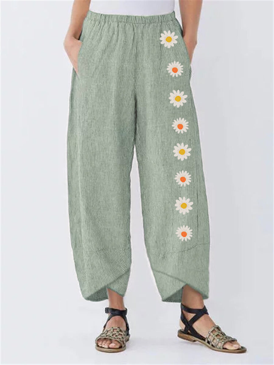 Product: Women's Floral Print Solid Color Pant Loose Split Trousers