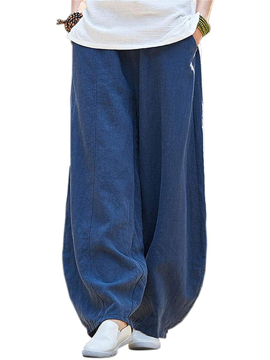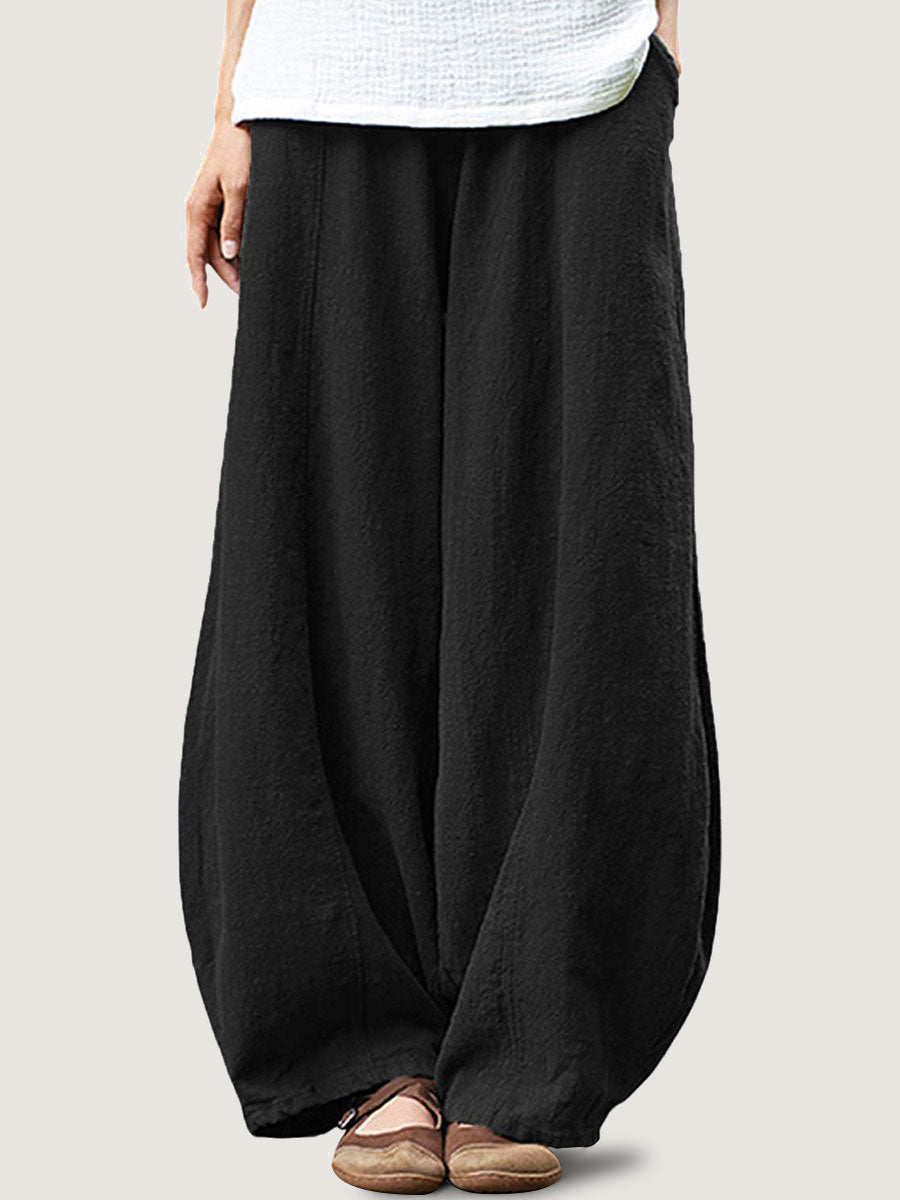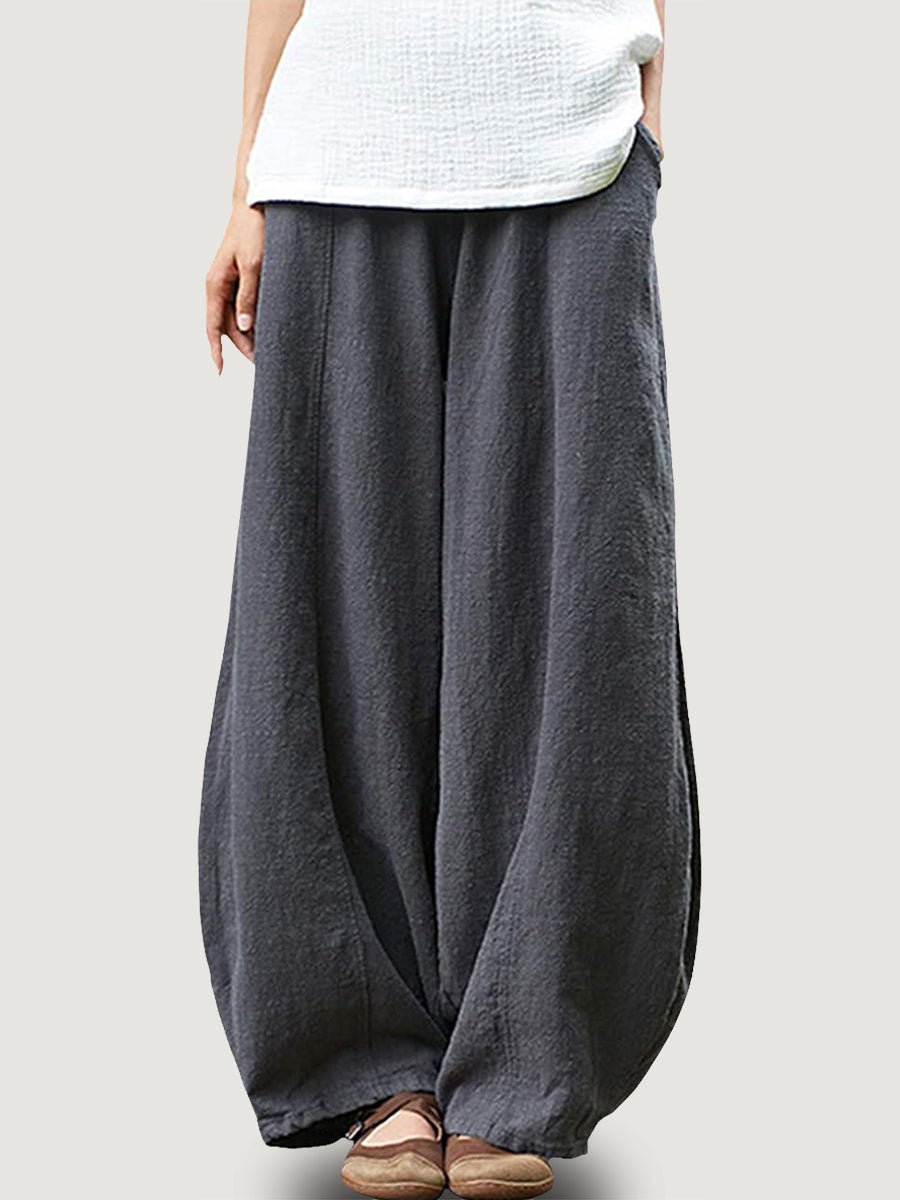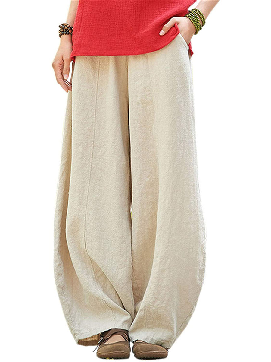 Women Cotton and Linen Wide Leg Bloomer Pant