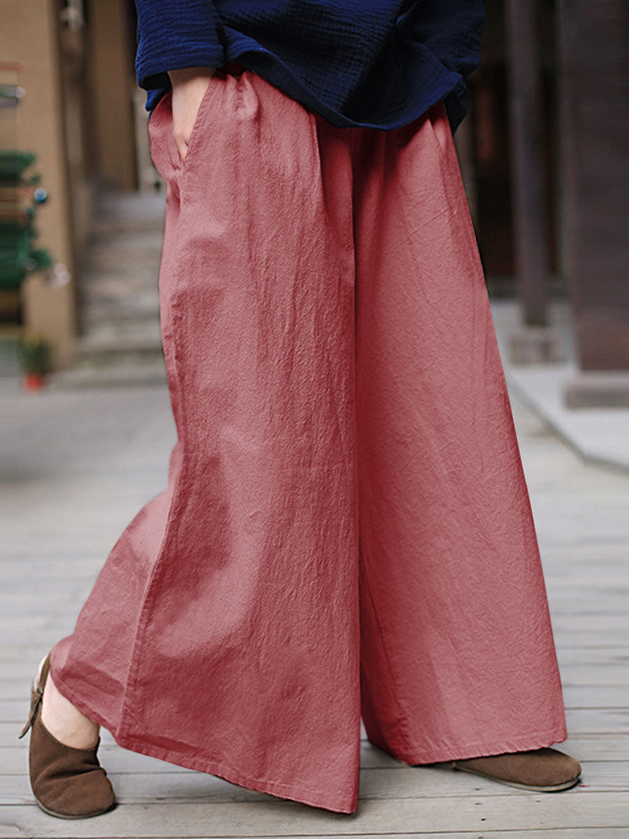 Product: Women's Elastic Waist Pocket Casual Trousers Loose Retro Wide-leg Pants