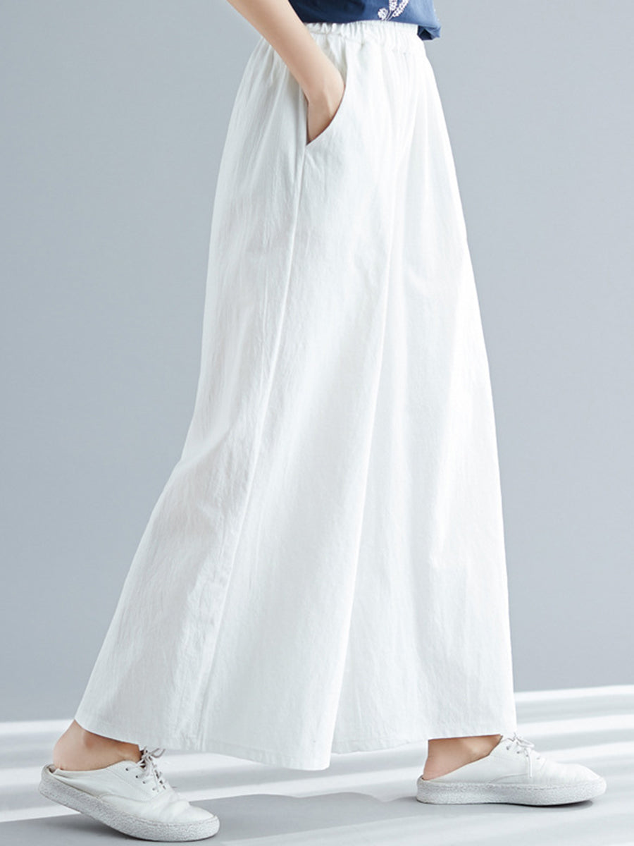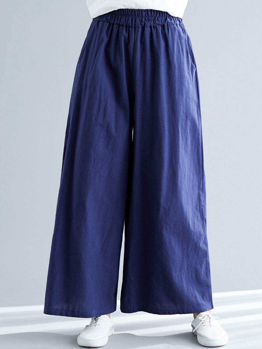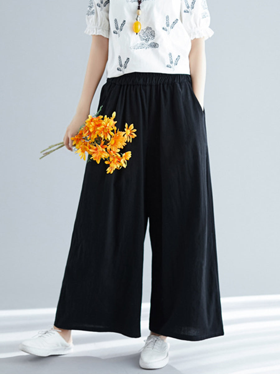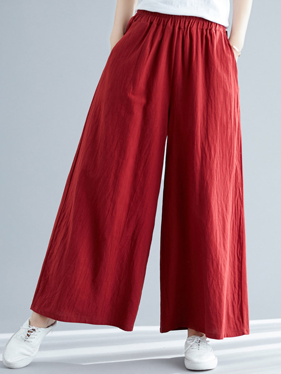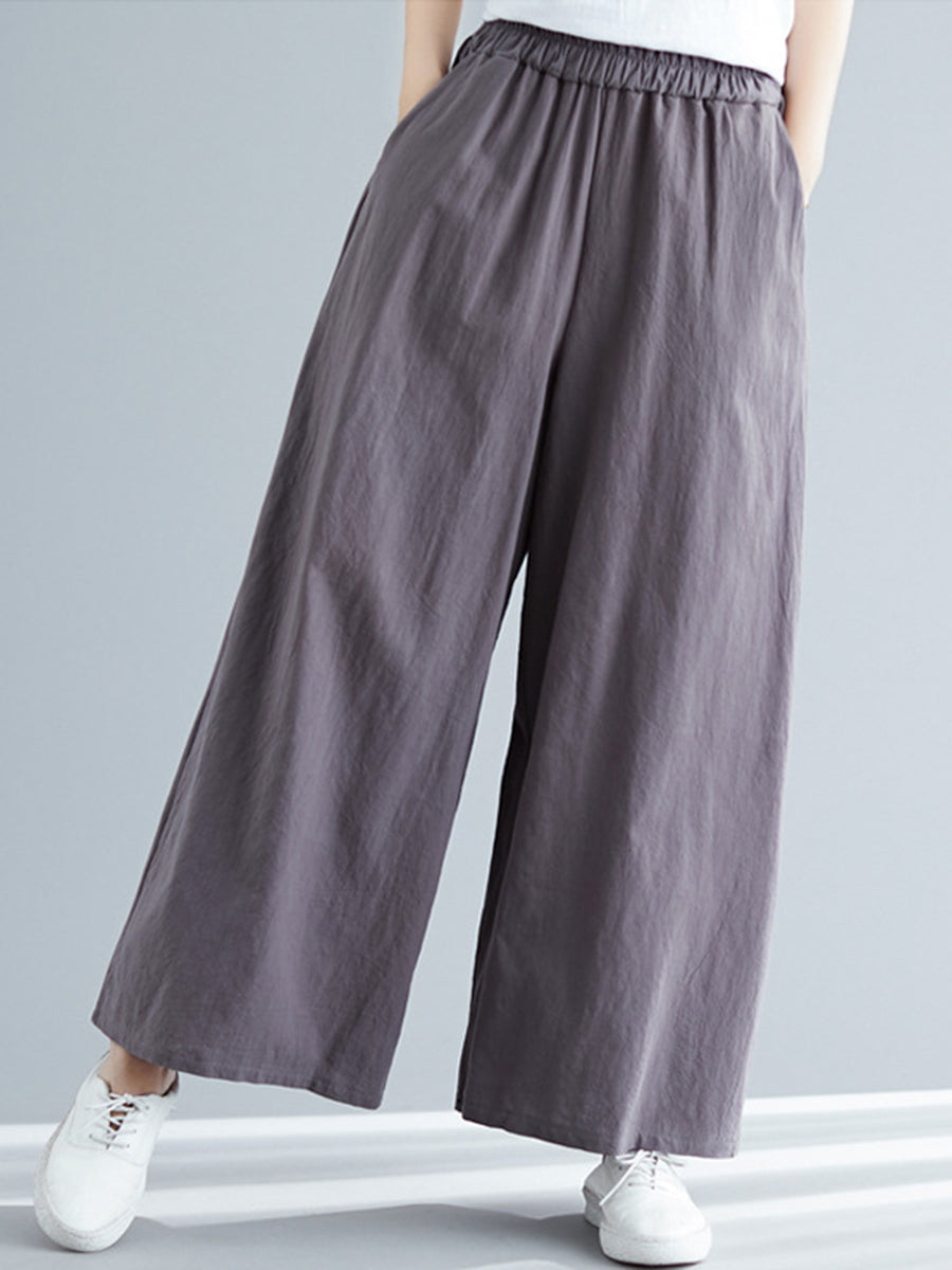 Hérmorcy Women Loose Retro Elastic Waist Wide-leg Casual Pant