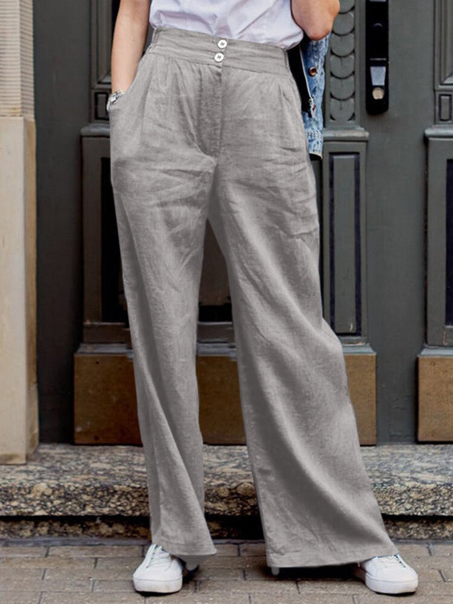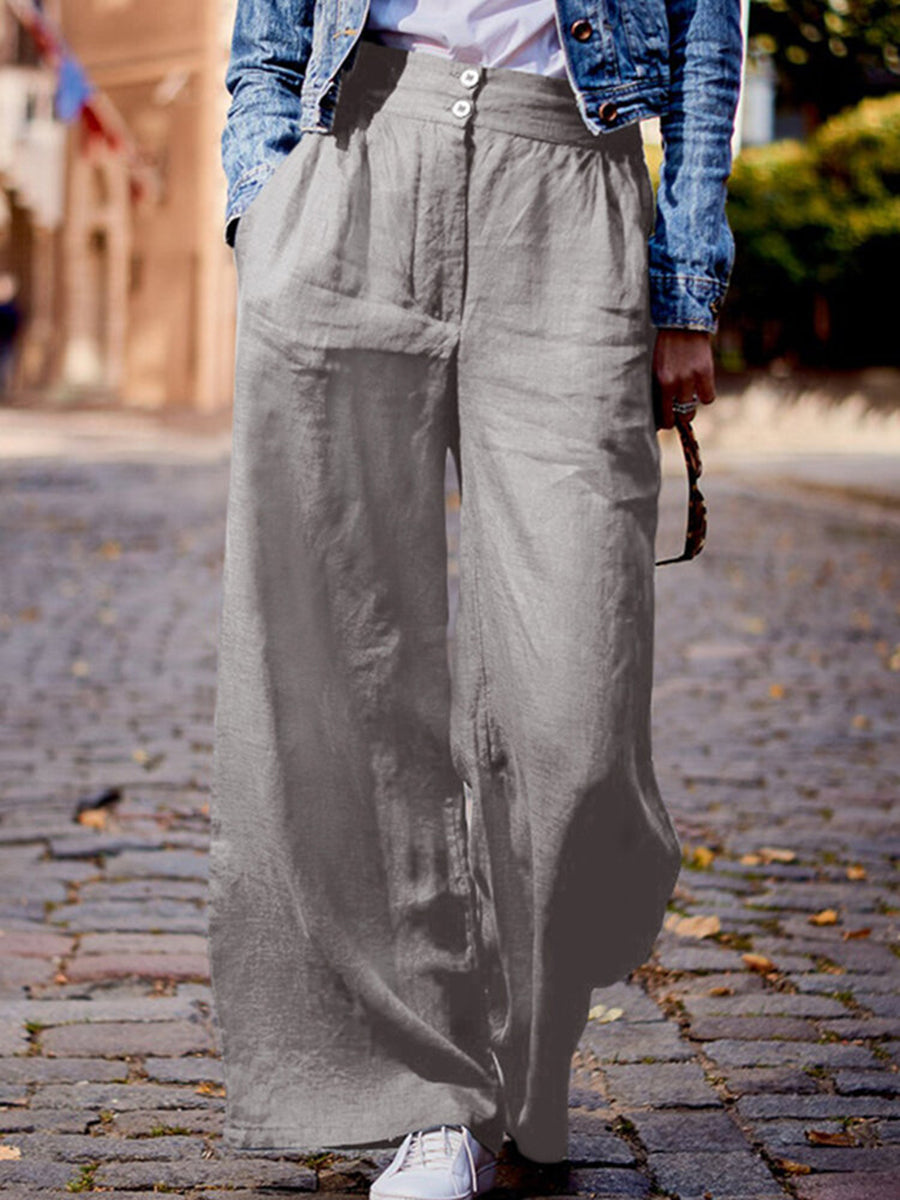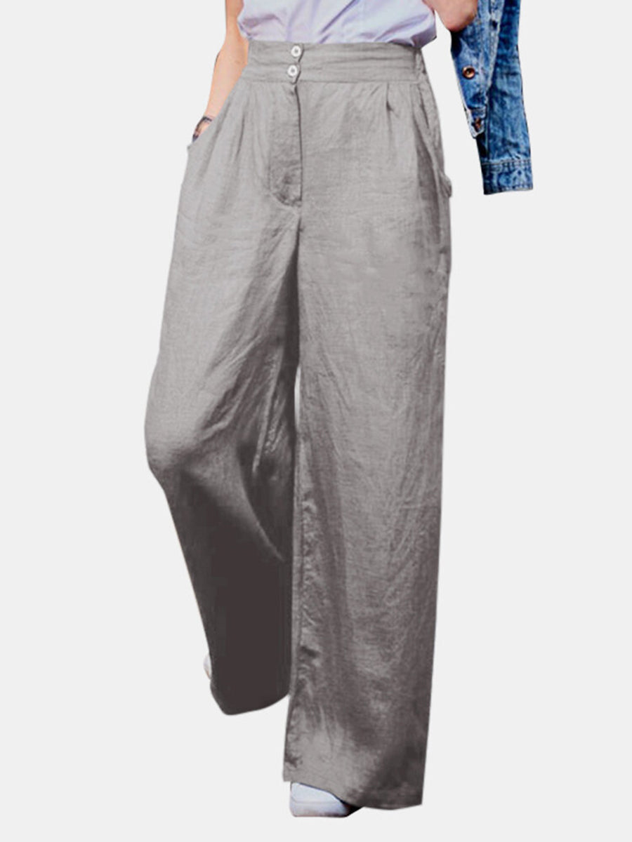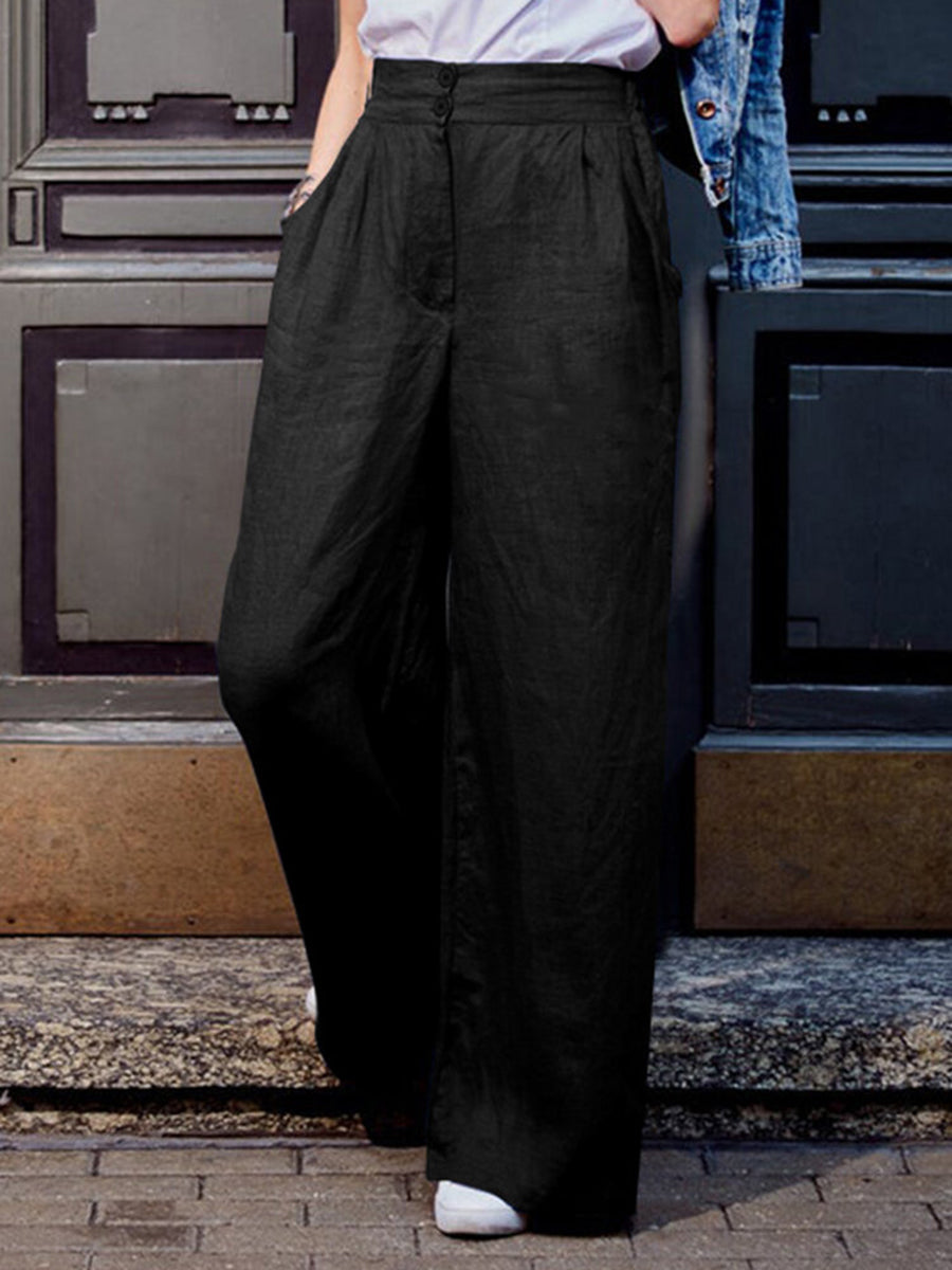 Hérmorcy Women Loose Wide-leg Pant Solid Color Casual Trousers