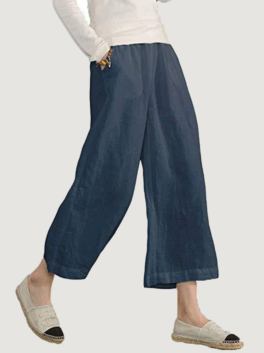 Hérmorcy Women Solid Color Loose Casual Wide-leg Cropped Pants